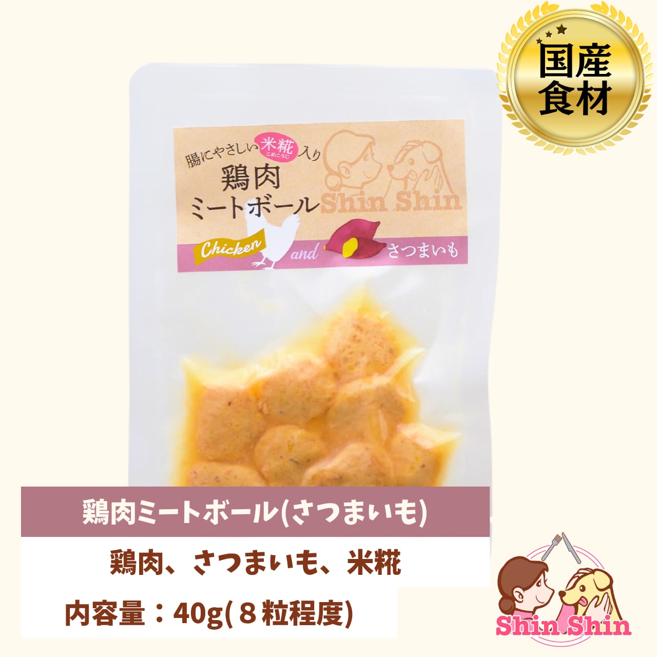 犬のおやつ 犬用レトルトフード 国産無添加 米糀入り 鶏肉ミートボール(さつまいも) 40g 犬のおやつ屋さんShinShin