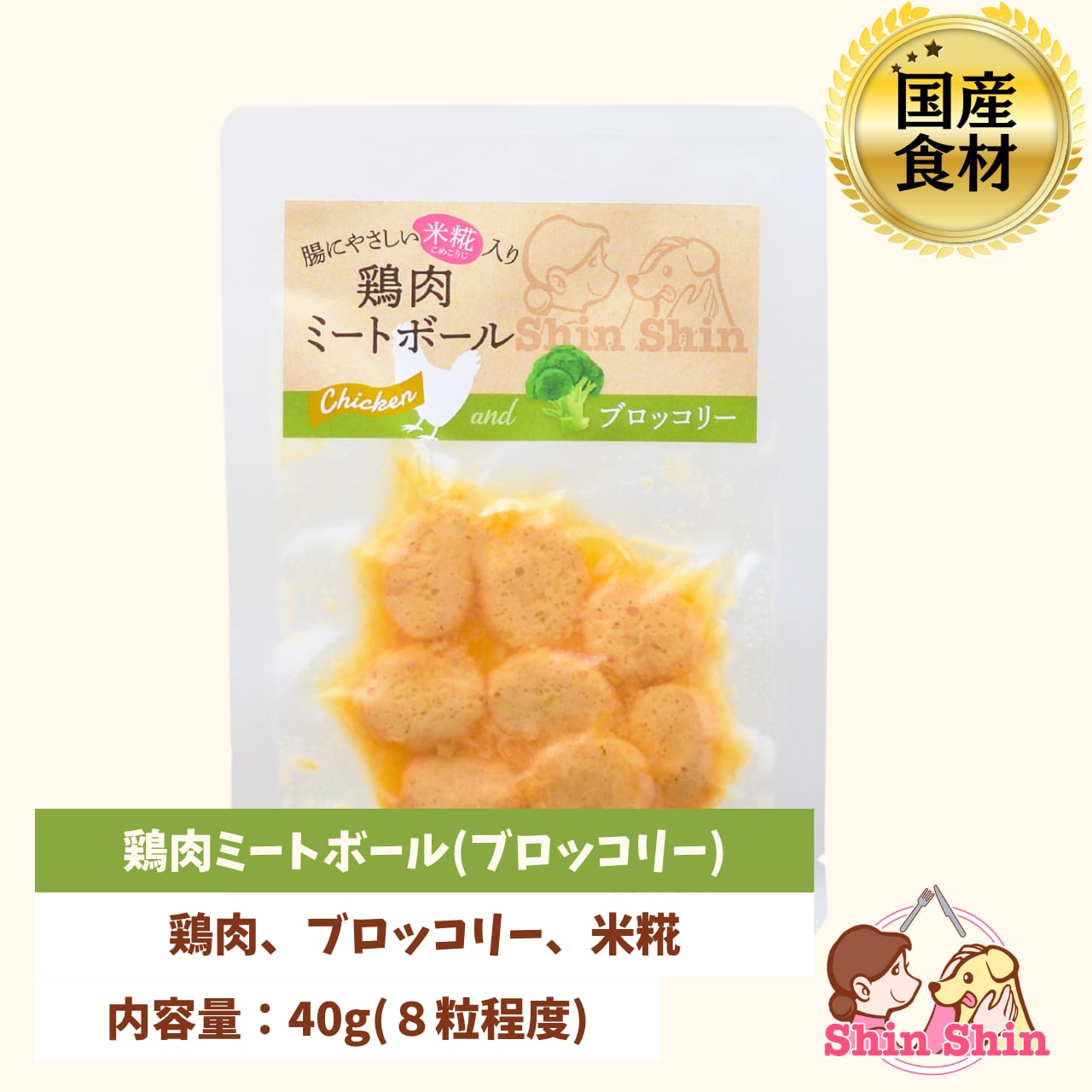 犬のおやつ 犬用レトルトフード 国産無添加 米糀入り 鶏肉ミートボール(ブロッコリー) 40g 犬のおやつ屋さんShinShin