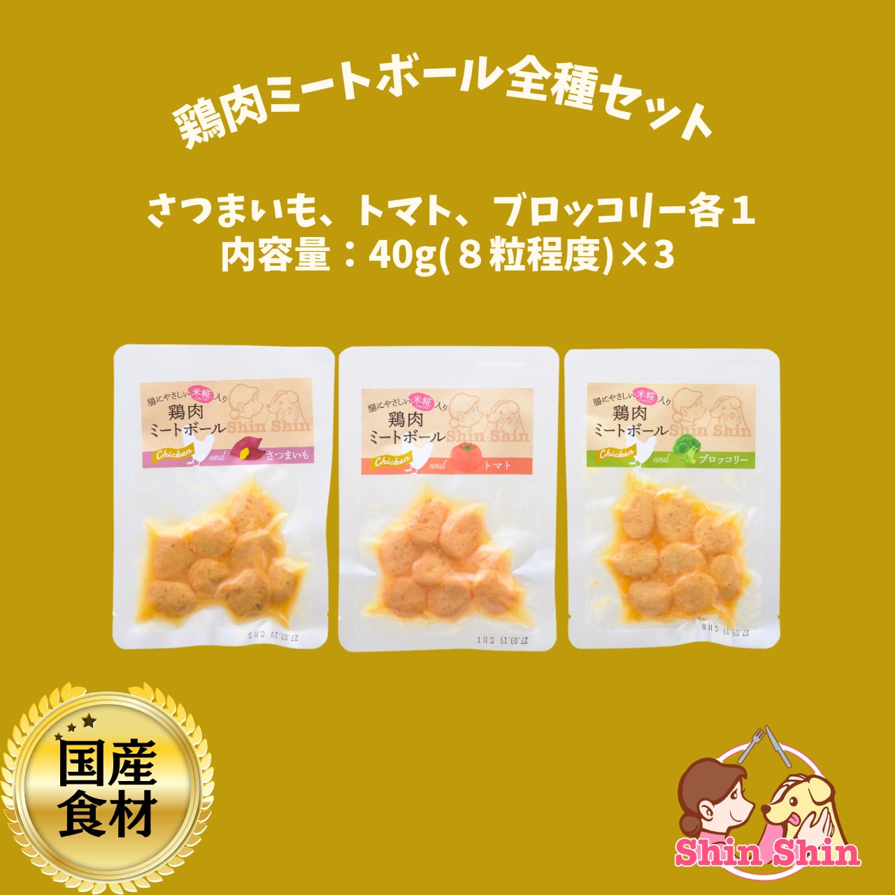 【鶏肉3点おまとめセット】犬のおやつ 犬用レトルトフード 国産無添加 米糀入り 鶏肉ミートボール3種(さつまいも/トマト/ブロッコリー) 40g×3 犬のおやつ屋さんShinShin