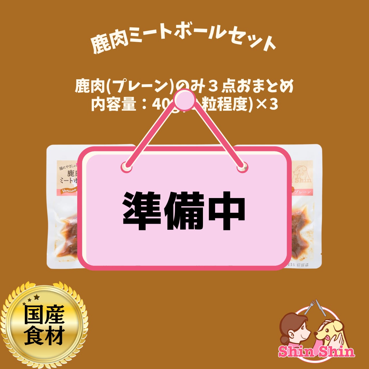 【鹿肉3点まとめ買いセット】犬のおやつ 犬用レトルトフード 国産無添加 米糀入り 鹿肉ミートボール3点(プレーン×3) 40g×3 犬のおやつ屋さんShinShin