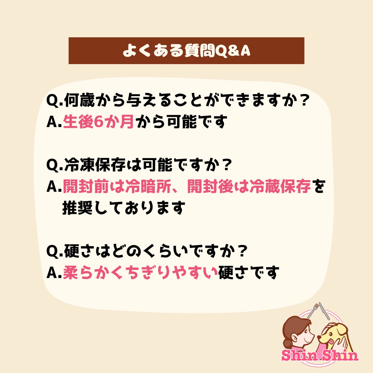 ●本品は保存料・添加物不使用の犬用おやつです。開封後は冷蔵庫で保管し、ぜひお早めにお与えください。