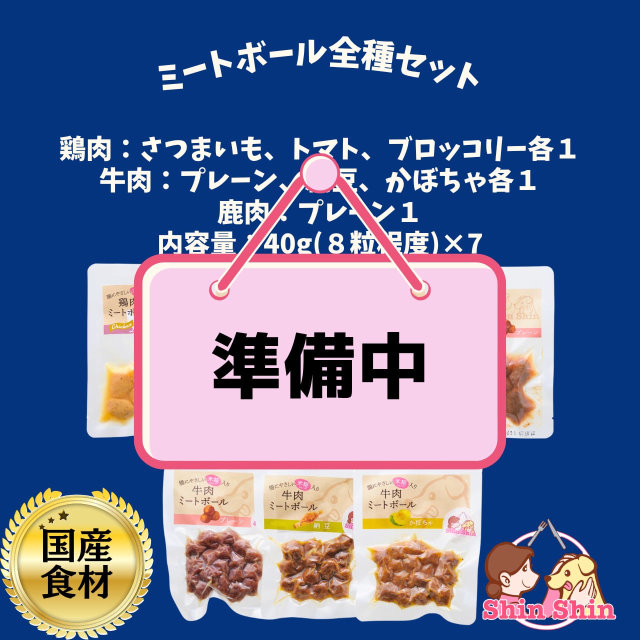 【豪華全種まとめ買いセット】犬のおやつ 犬用レトルトフード 国産無添加 米糀入り 鶏肉ミートボール3種(さつまいも/トマト/ブロッコリー) 牛肉ミートボール3種(プレーン/納豆/かぼちゃ) 鹿肉ミートボール(プレーン) 40g×7 犬のおやつ屋さんShinShin